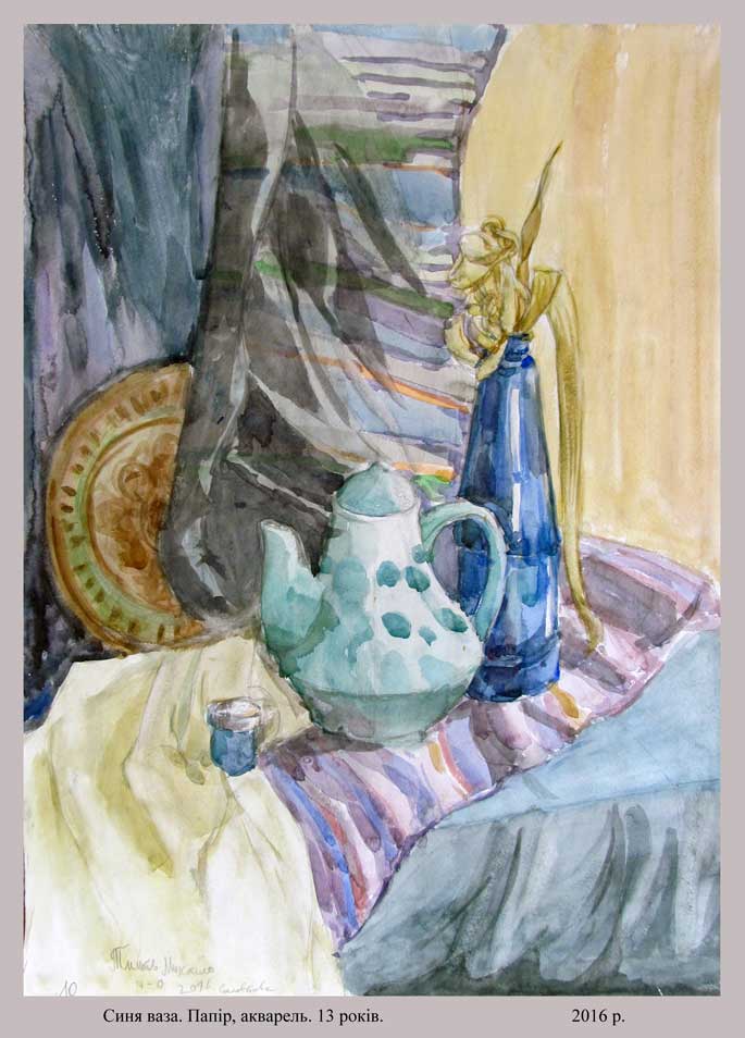 "Синя ваза"папір, акварель, 2016 (13 років)