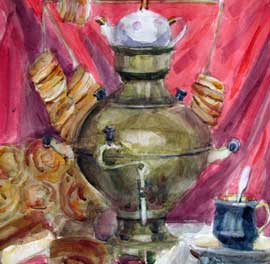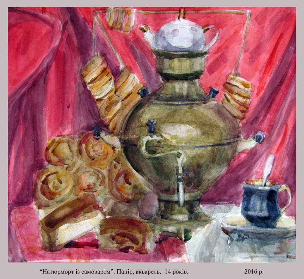 "Натюрморт із самоваром"папір, акварель, 2016 (14 років)