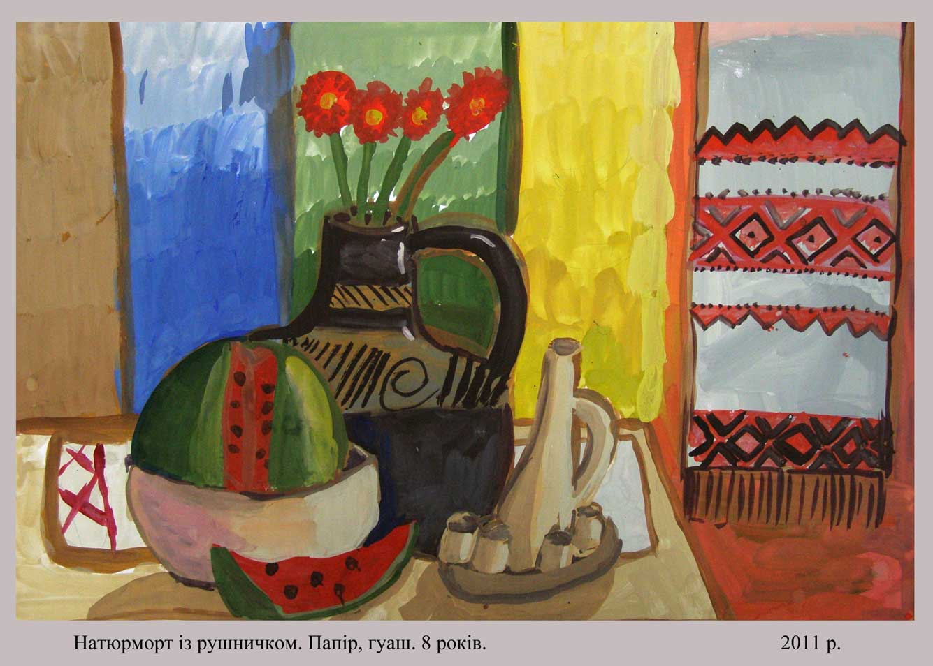 "Натюрморт із рушничком" папір, гуаш, 2011 (8 років)