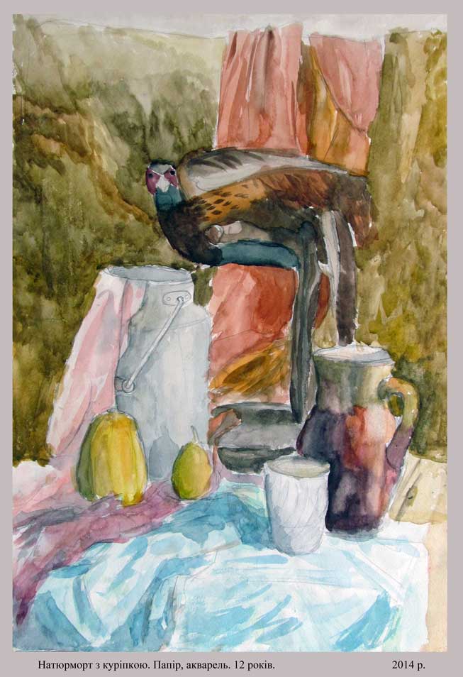 "Натюрморт з куріпкою" папір, акварель, 2014 (12 років)