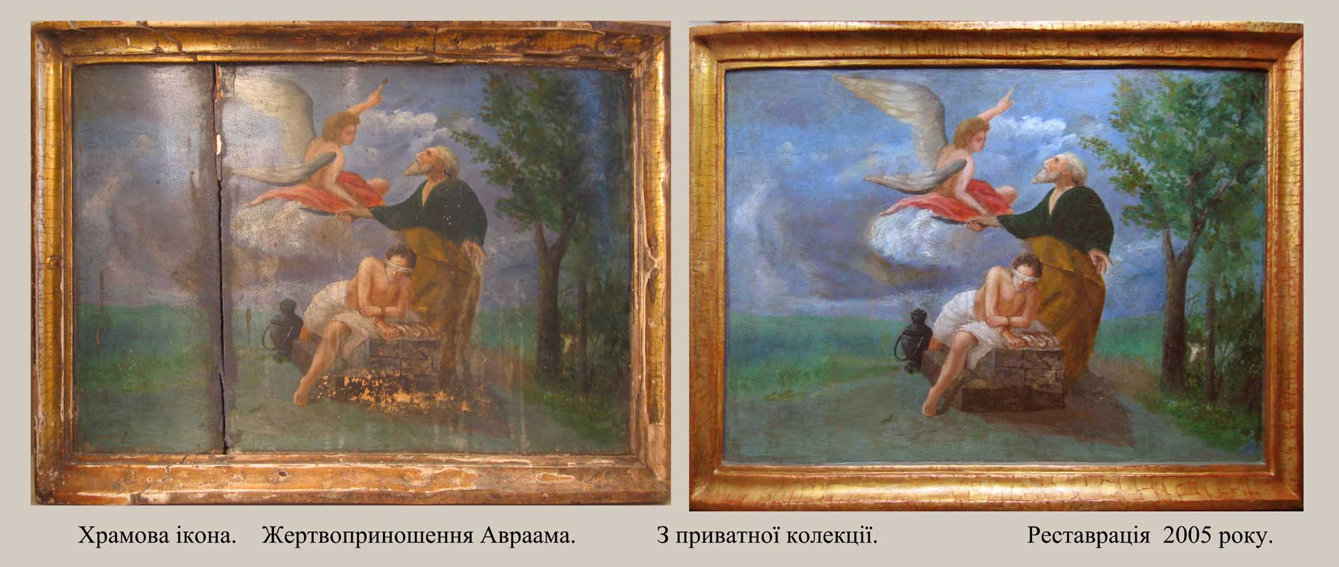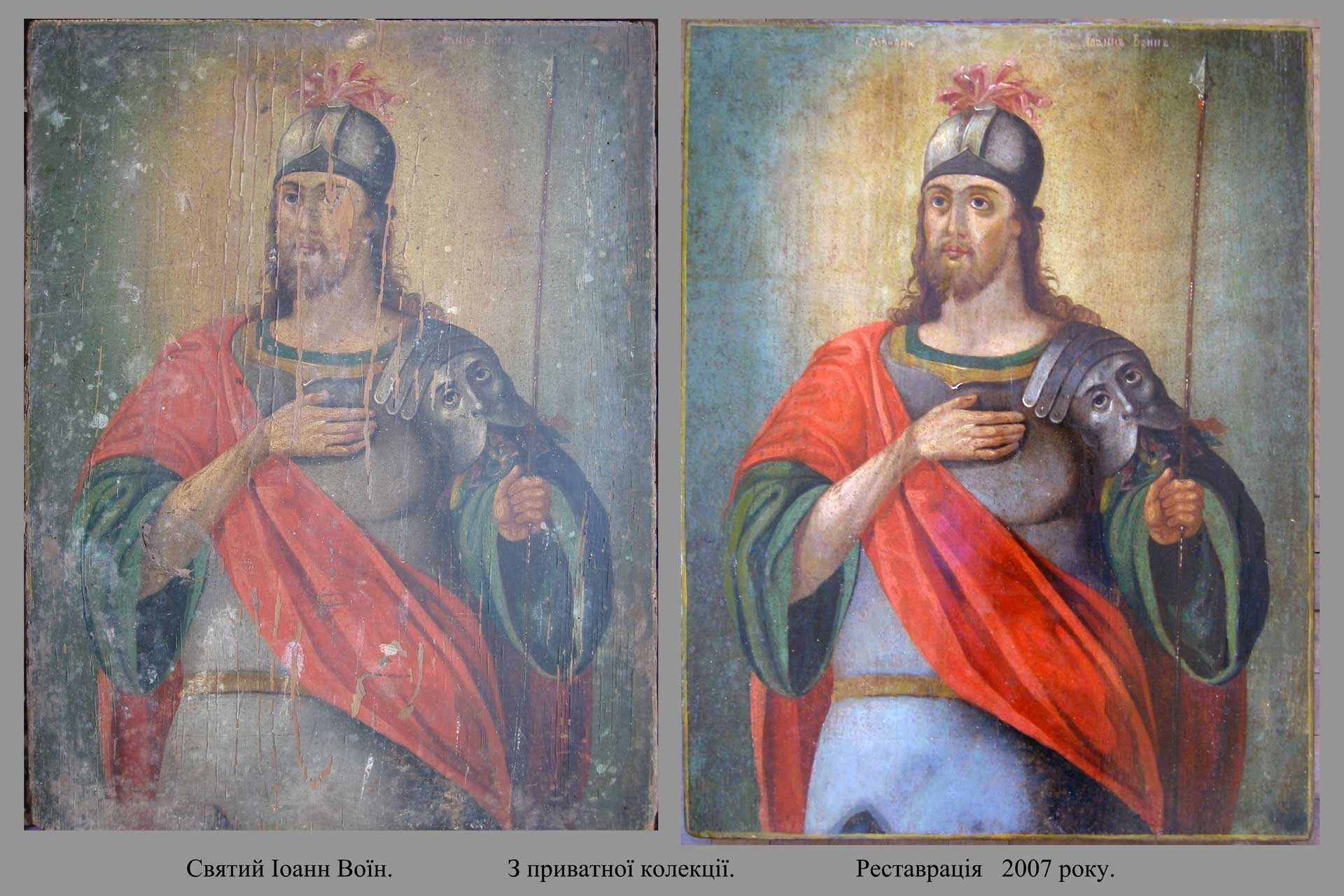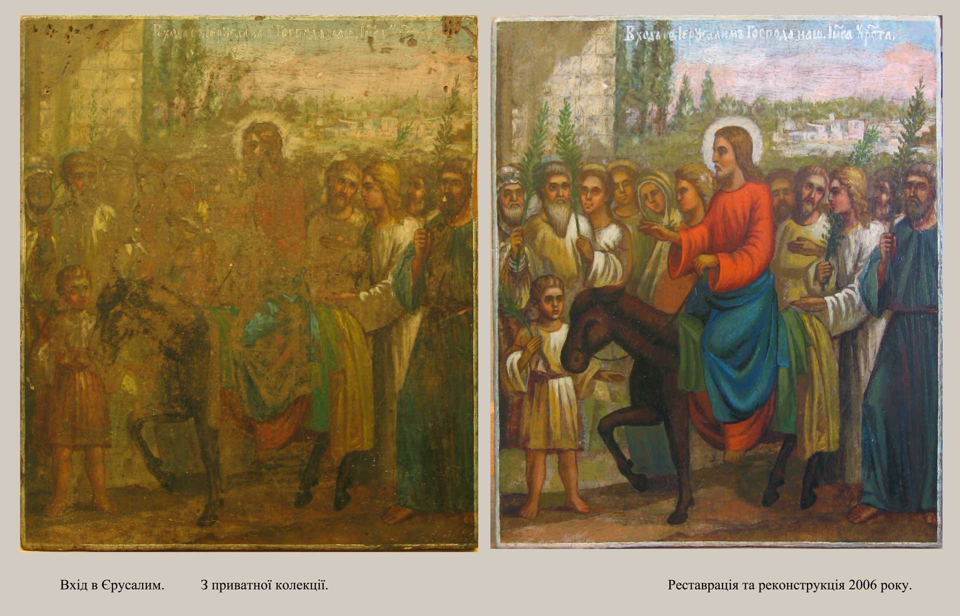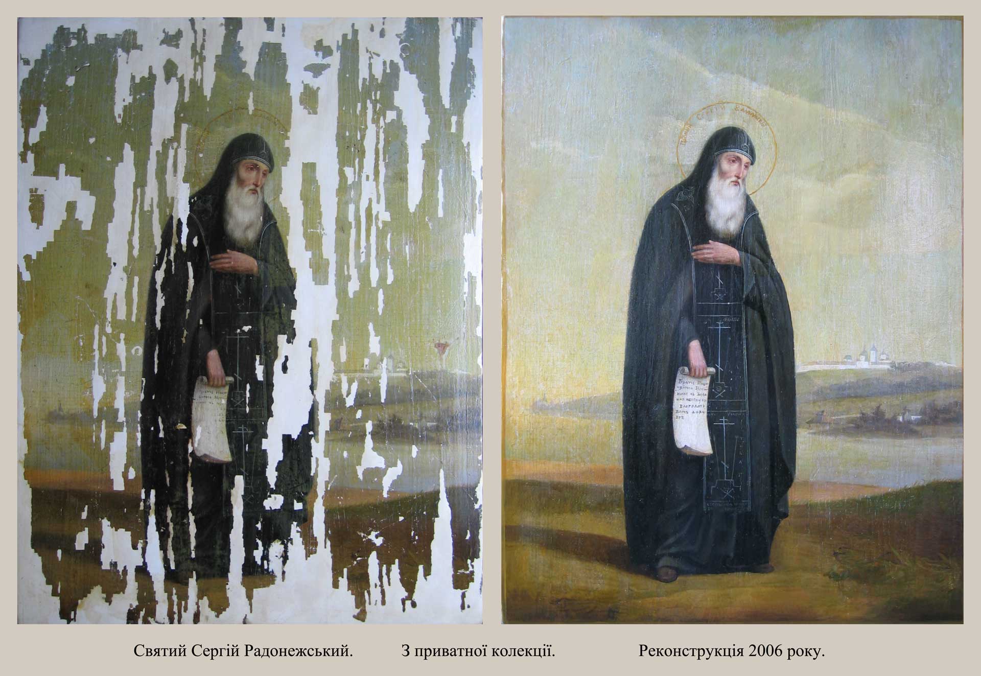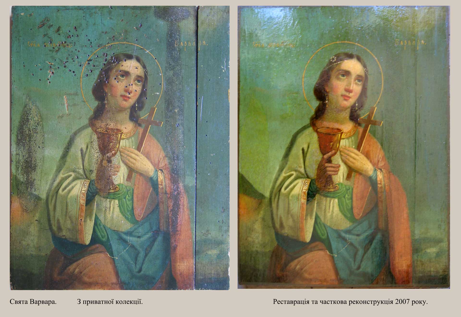 до кольору та тону авторського живопису, доповнено частини полотна, які не збереглись для максимального відтворення первозданного